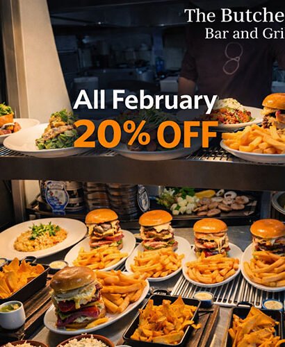 The Butcher’s Bar & Grill delivers 7 days a week, so you can enjoy your favourite dishes without leaving the house. Everything is freshly prepared and delivered straight to your door.