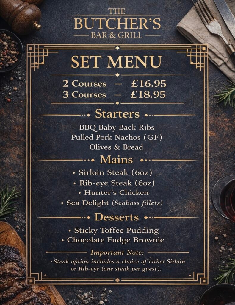 Whether you’re catching up with friends or enjoying a midweek treat, this is the perfect way to experience The Butcher’s Bar & Grill.